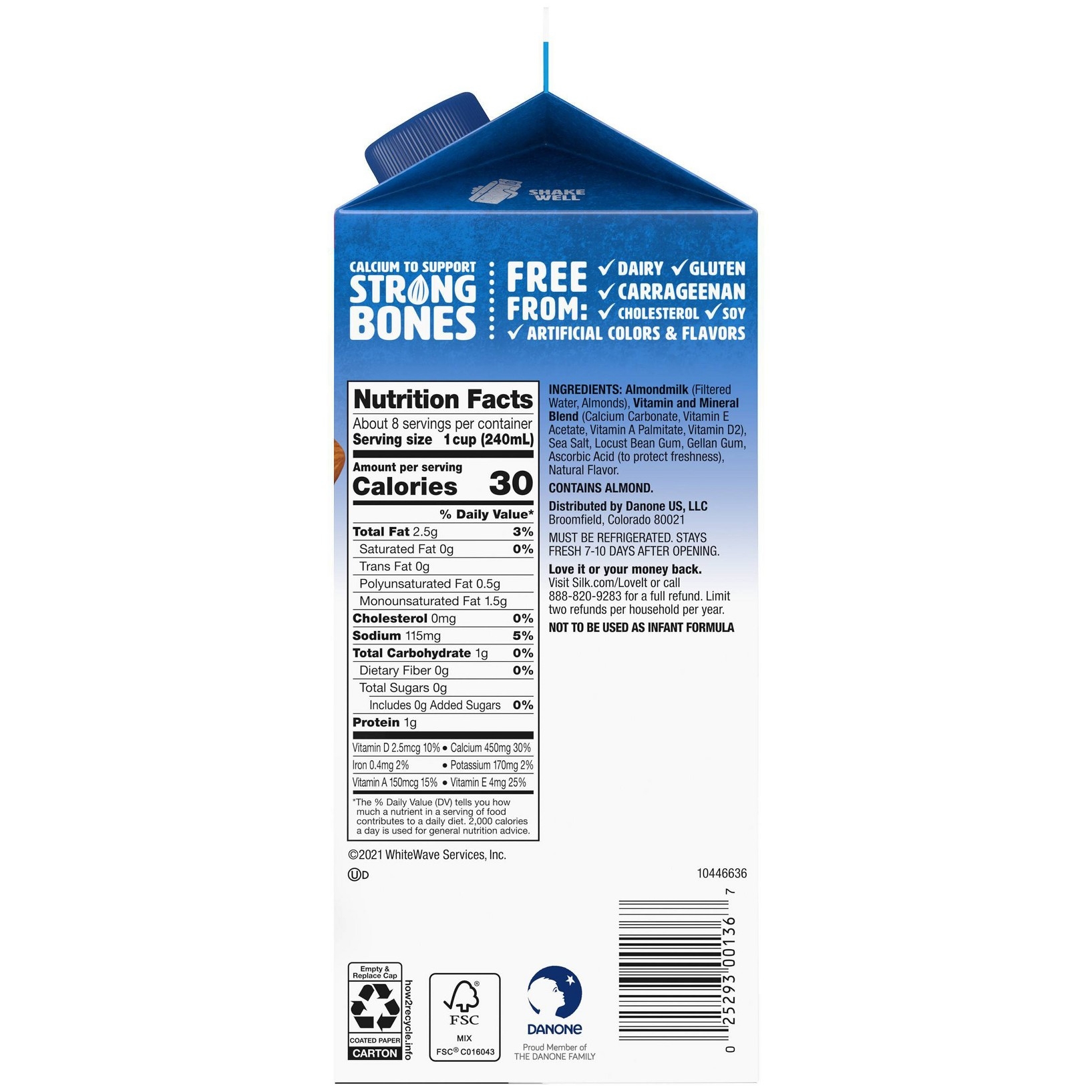 u0026bull;Unsweetened almondmilku003cbru003eu0026bull;Provides vitamin E and 50% more calcium than dairy milku003cbru003eu0026bull;30 calories and 0g saturated fat per serving, with no added sugaru003cbru003eu0026bull;Veganu003cbru003eu0026bull;Non-GMO Project Verifiedu003cbru003eu0026bull;Free of dairy, soy, lactose, gluten, casein, egg, and MSG
