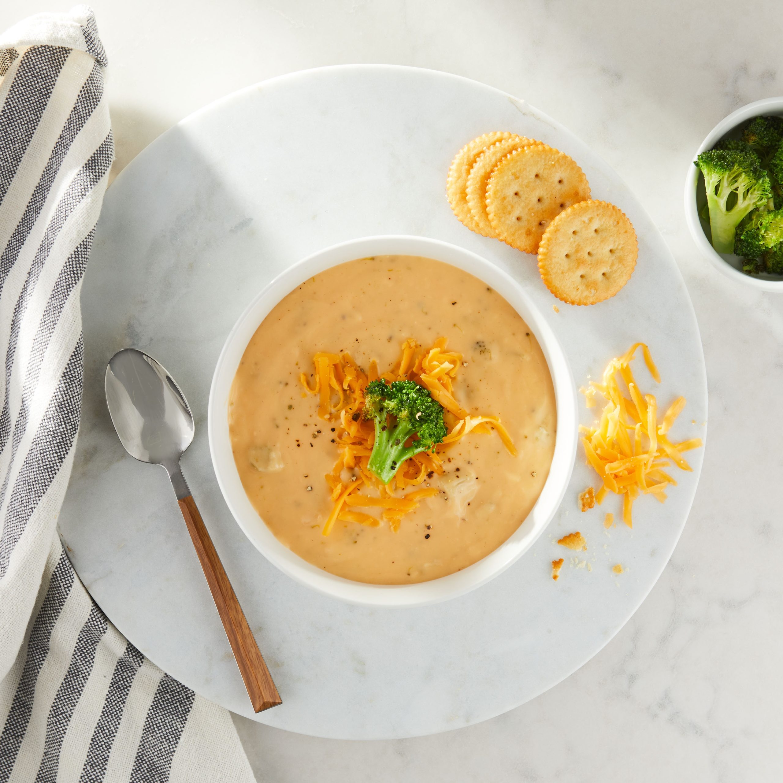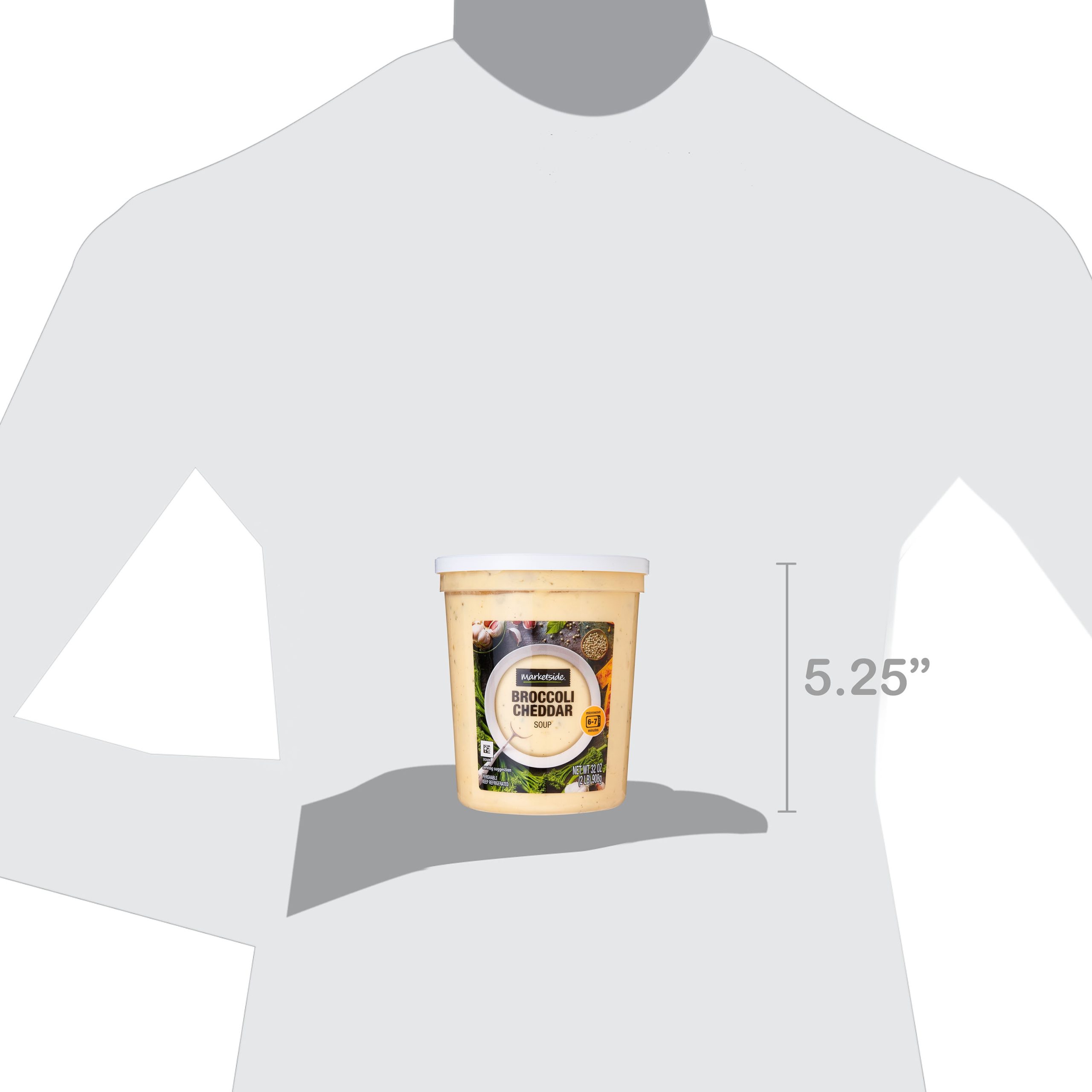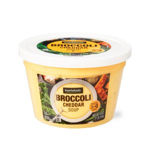 Nothing says comfort food like a hearty bowl of Marketside Broccoli Cheddar Soup. Made with cheddar cheese, chopped broccoli, sautéed onions in a cheesy cream sauce finished with melted butter and a touch of Parmesan cheese. We use real handcrafted vegetable stock that is slow simmered to guarantee great taste in every mouthful. This delicious soup will evoke memories of soup simmering on Grandma’s stove on a cold day. Ready to eat in just 3-4 minutes in the microwave, you can have dinner ready in a snap. Serve with a hearty grilled cheese sandwich or some warm cornbread, and you have a complete meal that will warm you in no time. Each container contains about two servings, and the resealable container makes it easy to take into the office for a warm lunch. Treat yourself to the warm, comforting goodness of Marketside Broccoli Cheddar Soup today.