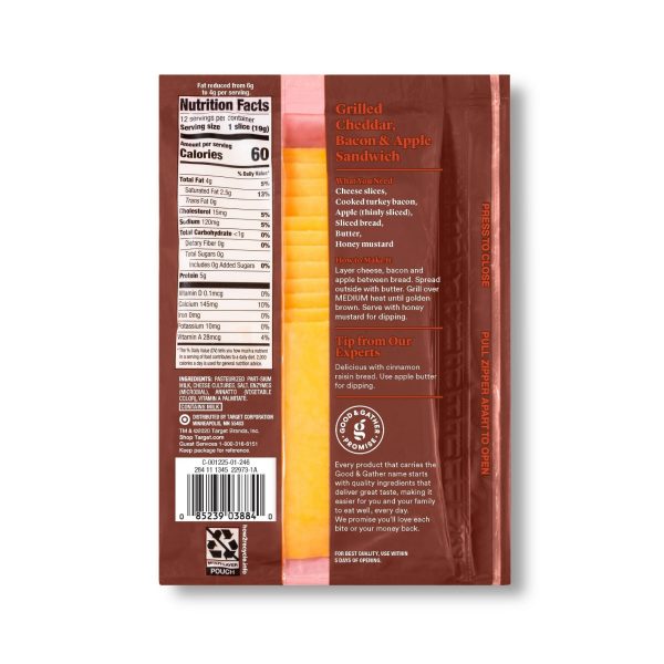Reduced Fat Sharp Cheddar Deli Sliced Cheese – 8oz/12 slices – Good u002638 Gatheru00268482
