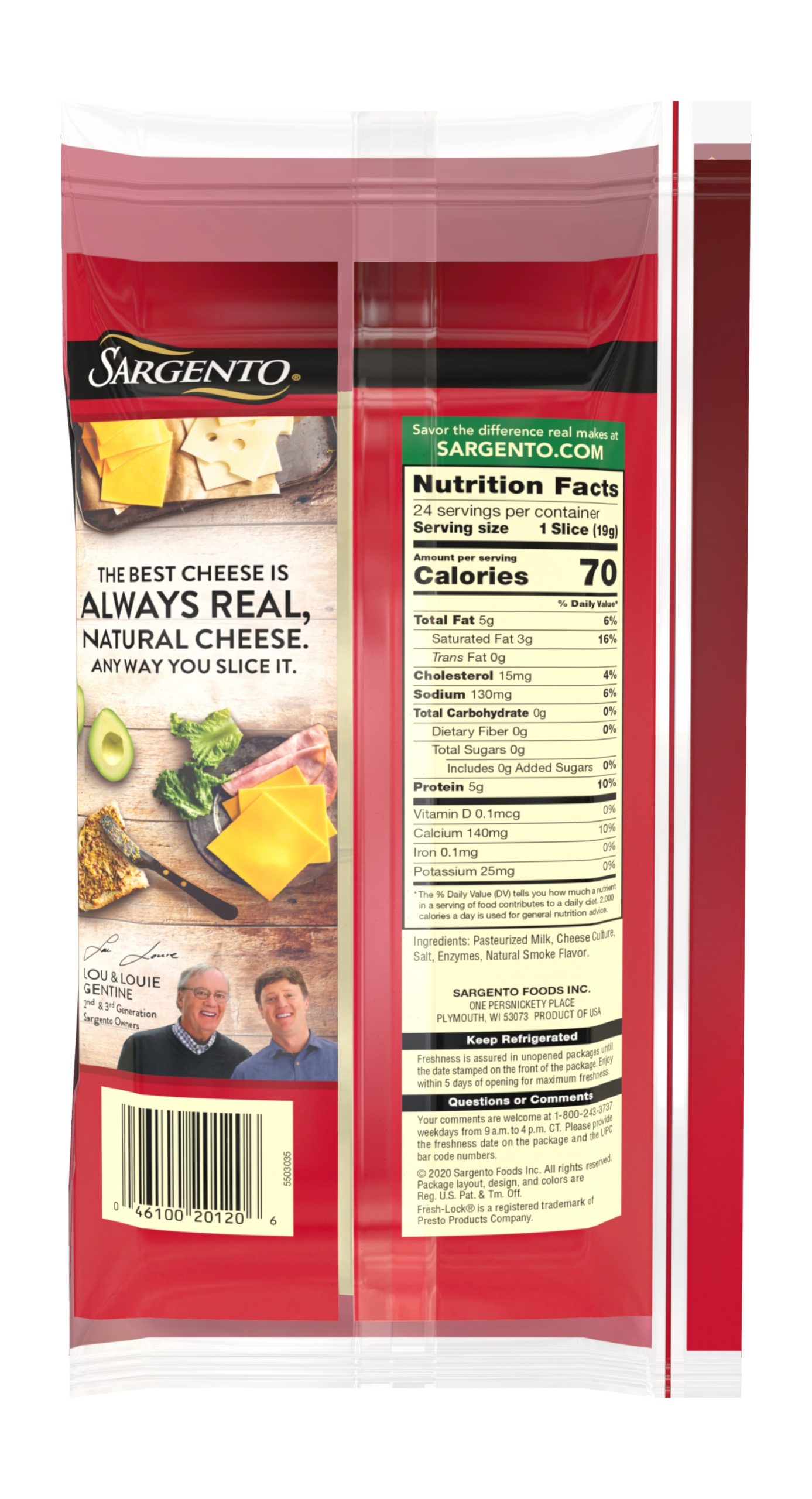 Sargento Natural Smoke Flavor Sliced Provolone Cheese, 16 Oz, 24 Ct