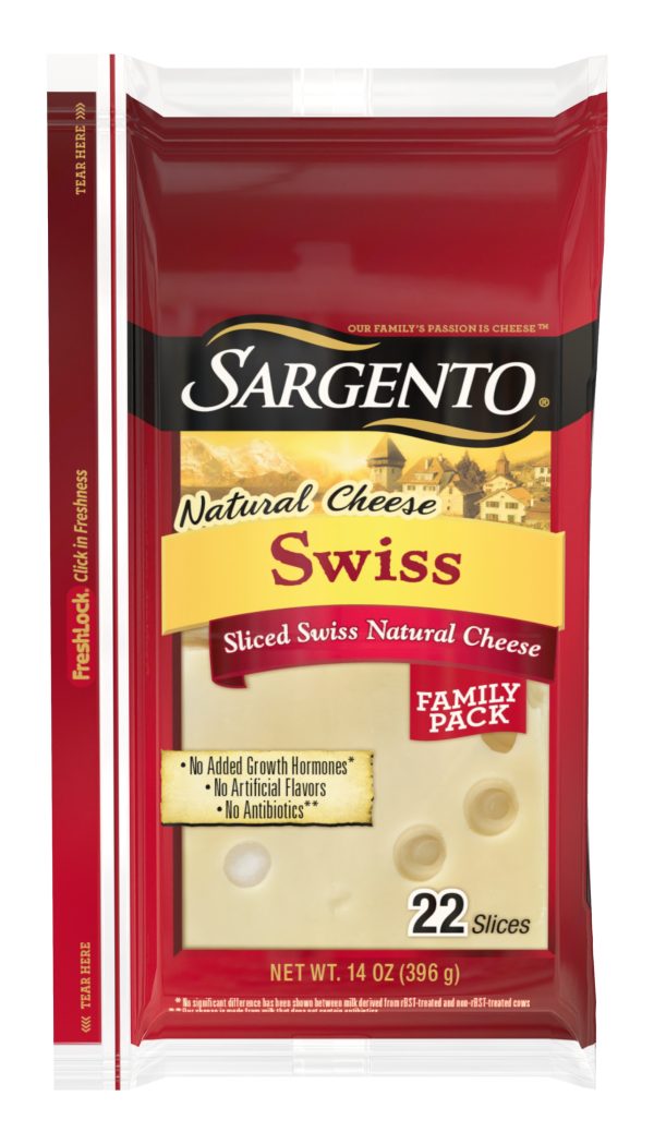 Sargento Natural Sliced Swiss Cheese, 14 Oz, 22 Ct