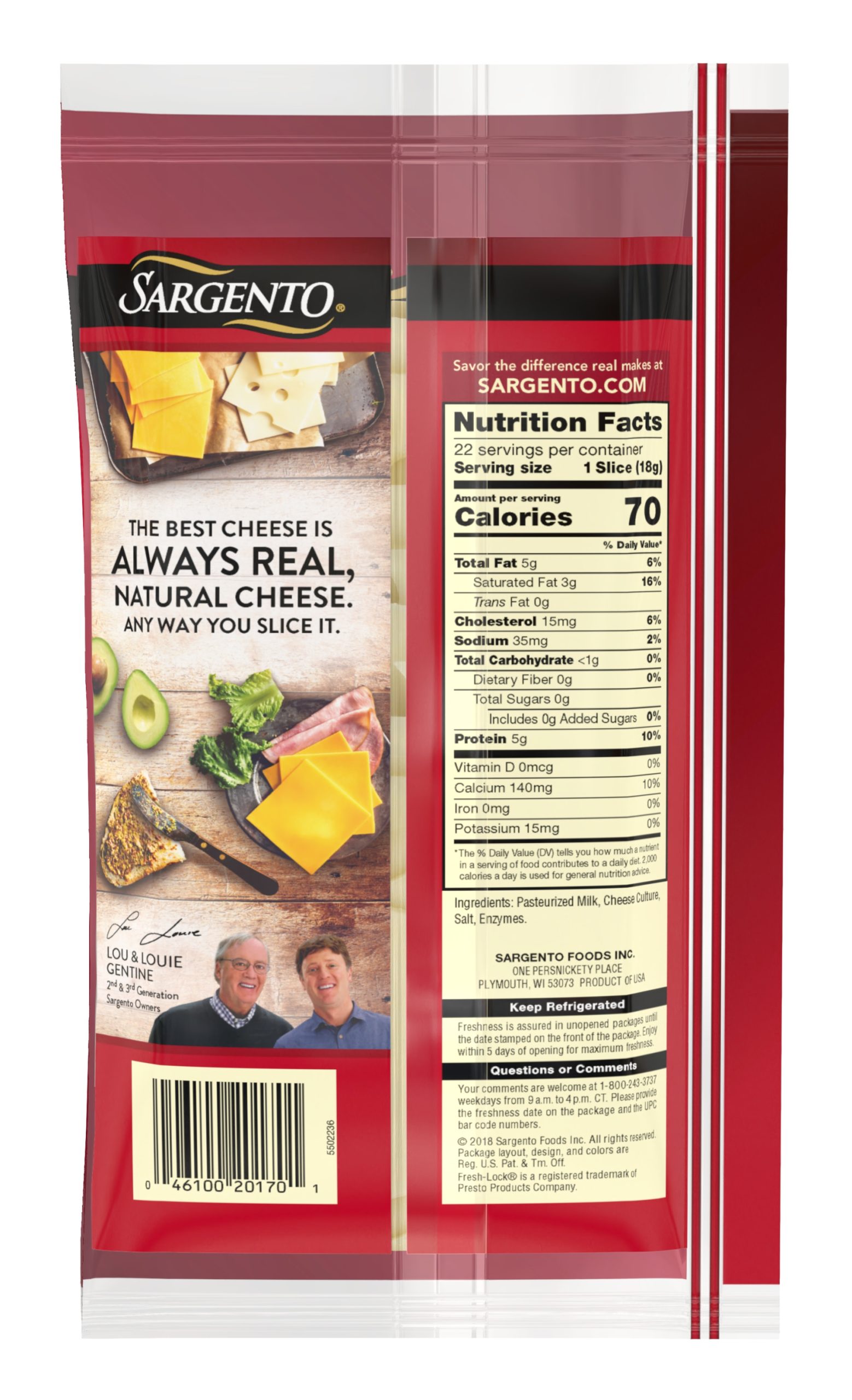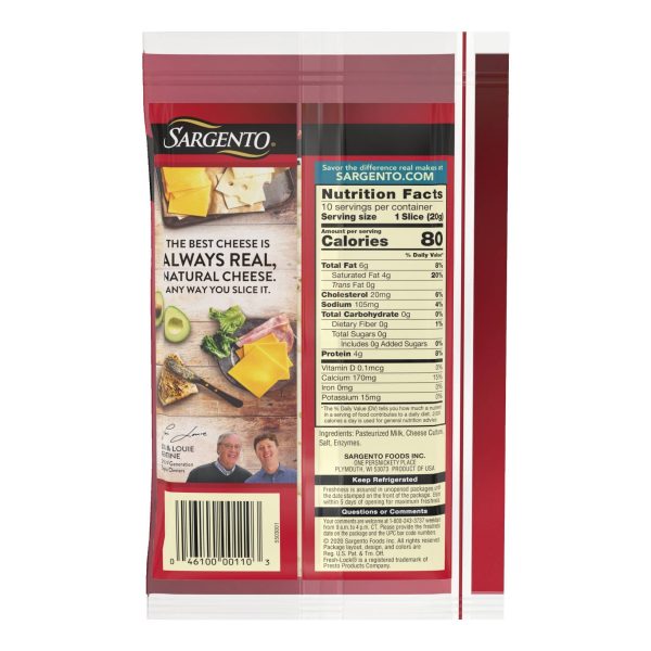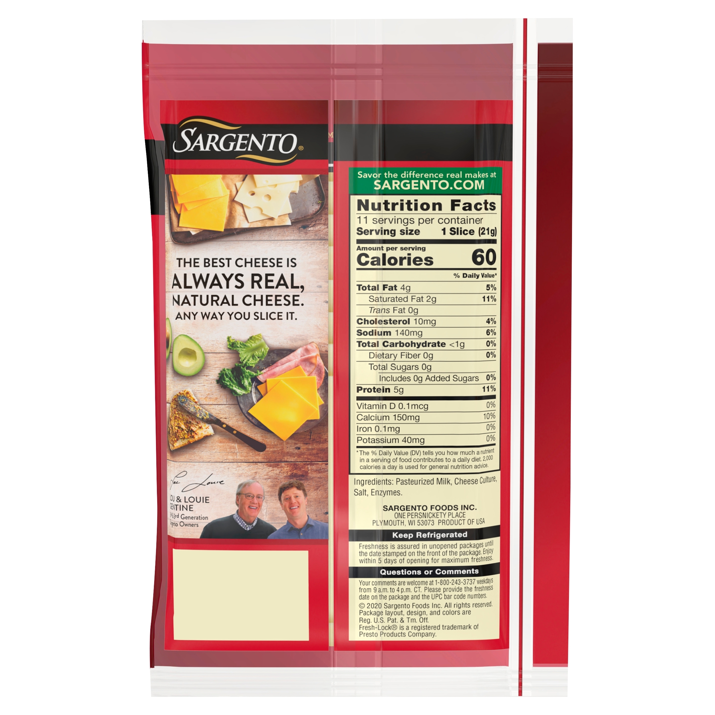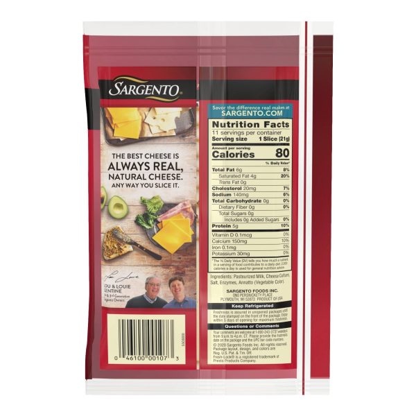 u0026bull;Sargento® Sharp Cheddar Cheese is flavorful enough to stand on its own, and versatile enough to add zing to everything from a burger to apple pie to the ultimate grilled cheese.u003cbru003eu0026bull;This 8 oz. package comes with 11 slices of Sharp Cheddar cheese perfect for appetizers, entrees, and grilled cheese sandwiches.u003cbru003eu0026bull;100% Real, Natural Cheese uses ingredients like, cultured pasteurized milk, salt, enzymes, and annatto – a plant-derived color.u003cbru003eu0026bull;Easy-close FreshLock® packaging helps keep cheese fresh longer, but use within five days upon opening for maximum freshnessu003cbru003eu0026bull;Our Family’s Passion Is Cheese