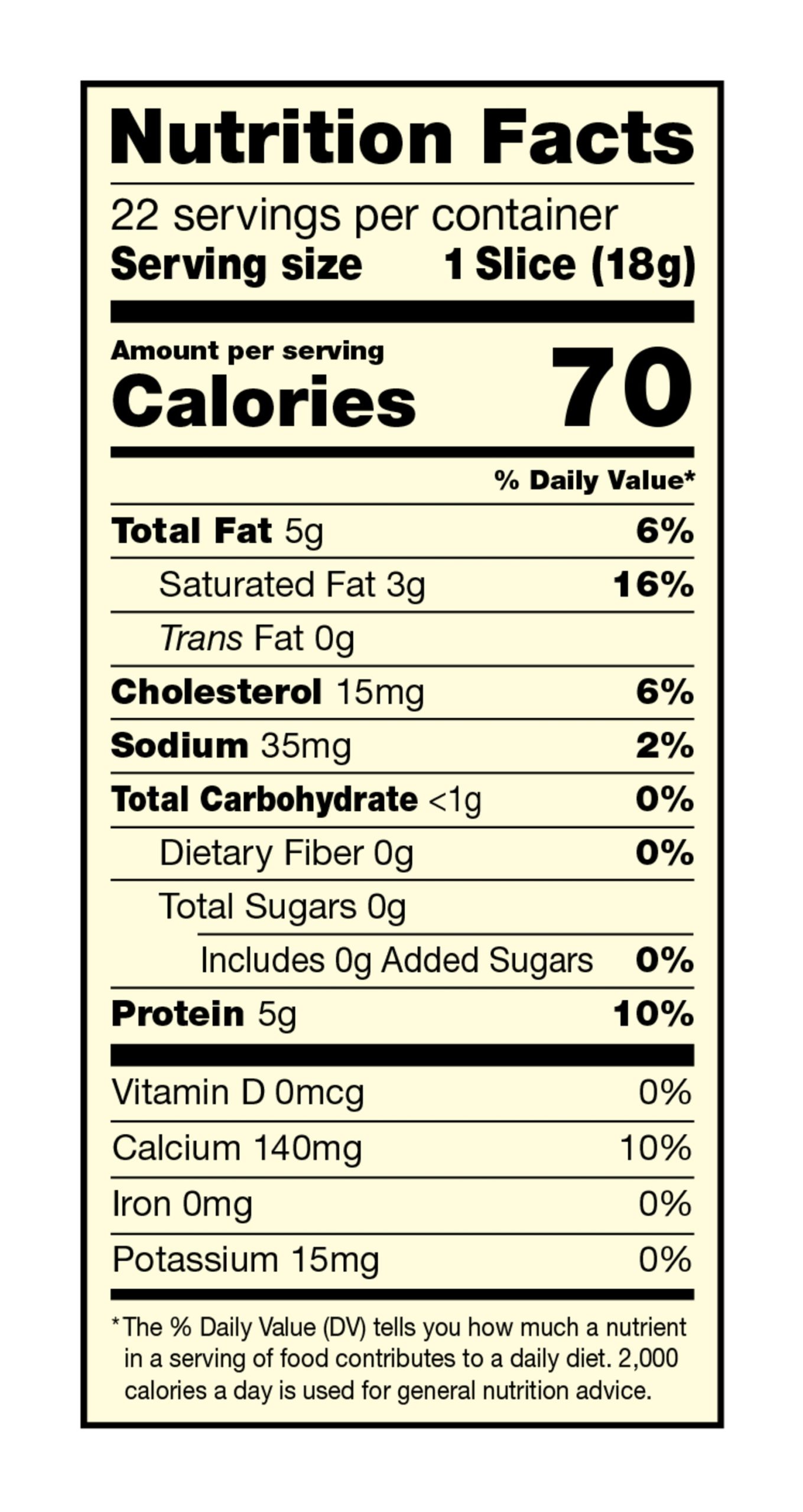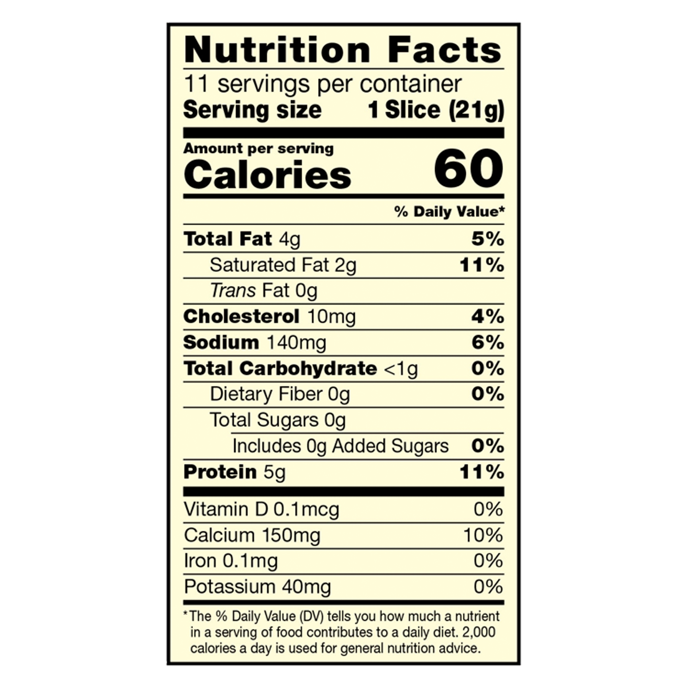 This delicious cheese is known for its sweet, nutty flavor, pale yellow color, and ability to go with anything. Layer our Swiss natural cheese slices onto sandwiches and burgers, or enjoy with a side of apples, pears, or grapes.