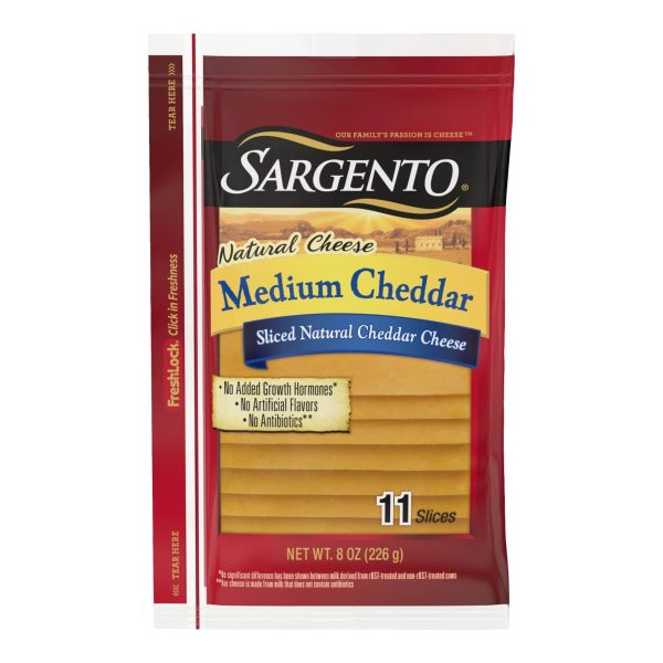 u0026bull;Sargento® Medium Cheddar Natural Cheese Slices bring enough bite to take your sandwich from ordinary to extraordinary.u003cbru003eu0026bull;This 8 oz. package comes with 11 slices of Medium Cheddar cheese perfect for appetizers, entrees, and grilled cheese sandwiches.u003cbru003eu0026bull;100% Real, Natural Cheese uses ingredients like, cultured pasteurized milk, salt, enzymes, and annatto – a plant-derived color.u003cbru003eu0026bull;Easy-close FreshLock® packaging helps keep cheese fresh longer, but use within five days upon opening for maximum freshnessu003cbru003eu0026bull;Our Family’s Passion Is Cheese