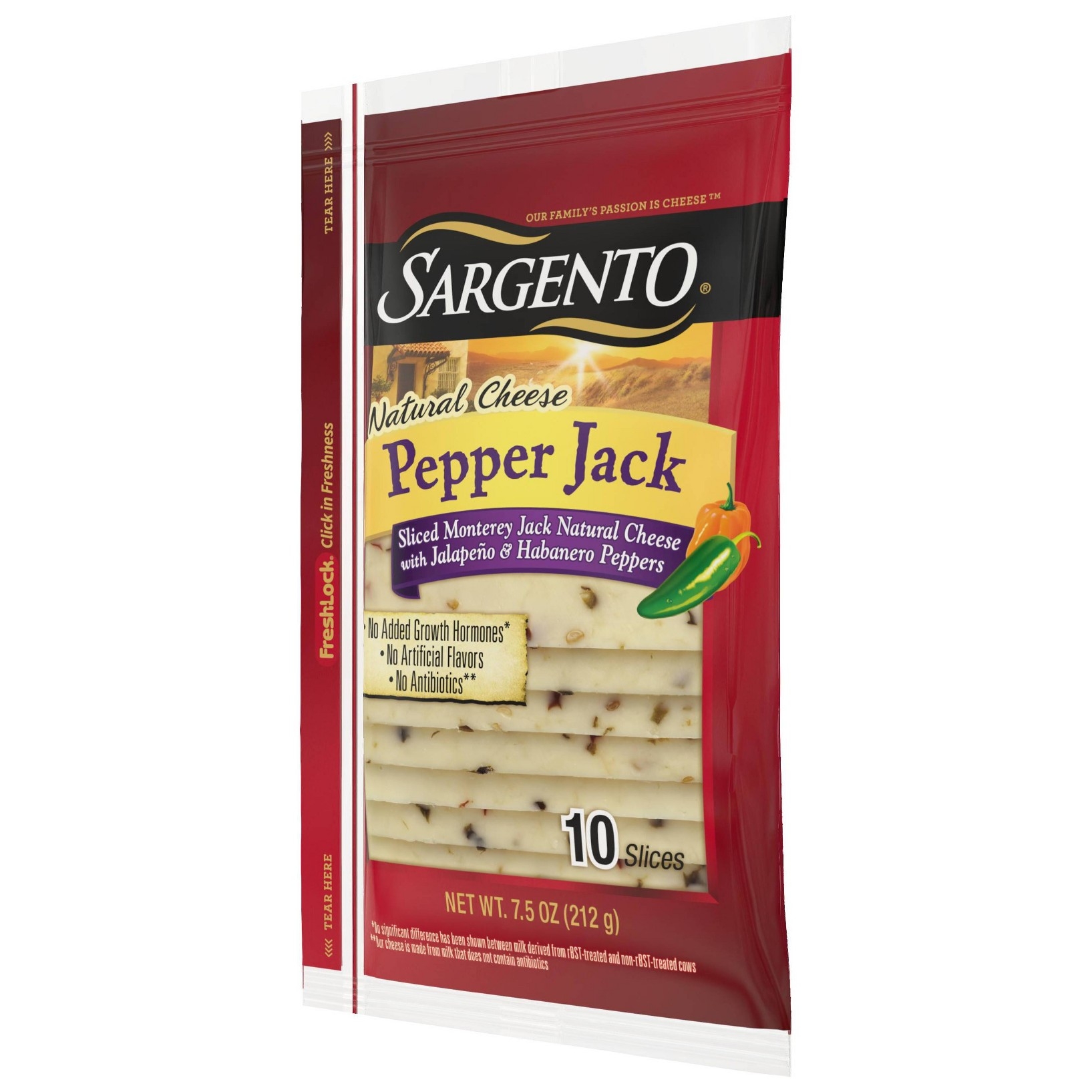 u0026bull;Sargento® Pepper Jack Cheese slices add a burst of heat to a turkey or roast beef sandwich and makes a great snack when served with crackers.u003cbru003eu0026bull;This 7.5 oz. package comes with 10 slices of Pepper Jack cheese perfect for sandwiches or atop crackers.u003cbru003eu0026bull;100% Real, Natural Cheese uses ingredients like, Pasteurized Milk, Hot Peppers (Jalapeno Peppers, Habanero Peppers), Cheese Culture, Salt, Enzymes.u003cbru003eu0026bull;Easy-close FreshLock® packaging helps keep cheese fresh longer, but use within five days upon opening for maximum freshnessu003cbru003eu0026bull;Our Family’s Passion Is Cheese