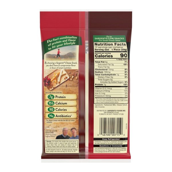 u0026bull;With 7 Grams of protein per serving*, Sargento® String Cheese, has more protein than a serving of almonds, hummus or an egg.u003cbru003eu0026bull;Sargento® String Cheese is a natural source of Calcium, each individual stick contains 20% DV Calcium and 80 Calories*. These Percent Daily Values are based on a 2,000 calorie diet. See nutrition information for saturated fat content.u003cbru003eu0026bull;When you need a quick and delicious snack to tide you over, choose Sargento® String Cheese to help power you through your day.u003cbru003eu0026bull;This order includes one 12-ounce package of String Cheese that contains 12 individual sticks.u003cbru003eu0026bull;Our Family’s Passion Is Cheese