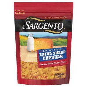 Sargento Off the Block Shredded Cheese, Extra Sharp Cheddar, Traditional Cut
