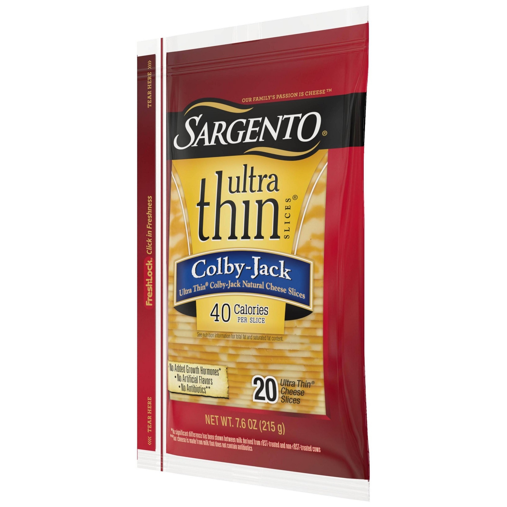 u0026bull;Sargento® Ultra Thin® Colby-Jack Cheese slices offer a creamy flavor to cold cut sandwiches and look great on an appetizer plate with its marbled orange and white color.u003cbru003eu0026bull;This 7.6 oz. package comes with 20 slices of Colby-Jack cheese perfect for grilled cheese and and cold cut sandwiches.u003cbru003eu0026bull;100% Real, Natural Cheese uses ingredients like, cultured pasteurized milk, salt, enzymes, and annatto – a plant-derived vegetable color.u003cbru003eu0026bull;Easy-close FreshLock® packaging helps keep cheese fresh longer, but use within five days upon opening for maximum freshnessu003cbru003eu0026bull;Our Family’s Passion Is Cheese