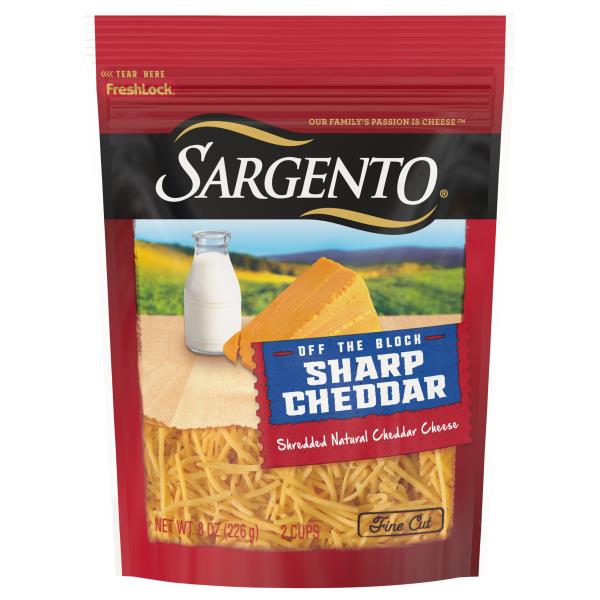 Sargento Off the Block Shredded Cheese, Sharp Cheddar, Fine Cut