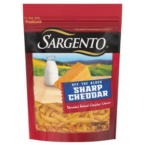 Sargento Shredded Cheese, Sharp Cheddar, Off the Block, Traditional Cut