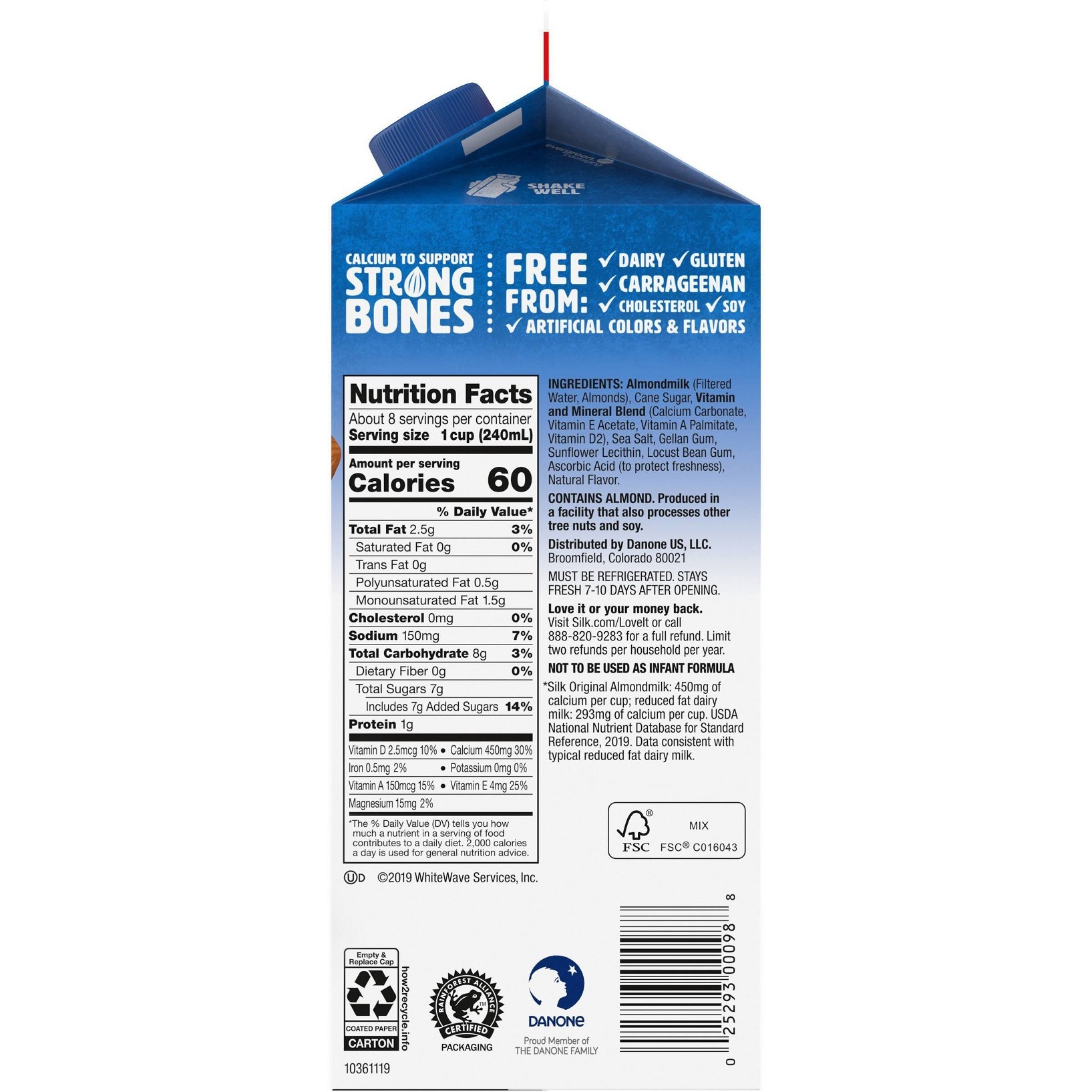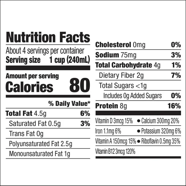 u0026bull;Almondmilk with original flavoru003cbru003eu0026bull;Provides vitamin E and 50% more calcium than dairy milku003cbru003eu0026bull;0g saturated fat per servingu003cbru003eu0026bull;Veganu003cbru003eu0026bull;Non-GMO Project Verifiedu003cbru003eu0026bull;Free of dairy, soy, lactose, gluten, casein, egg, and MSG