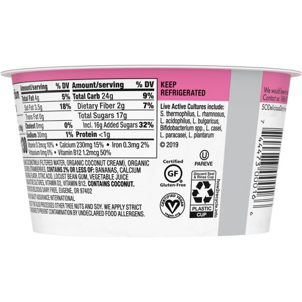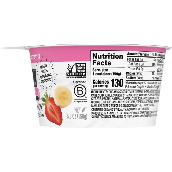 u0026bull;Dairy-free yogurt alternativeu003cbru003eu0026bull;Strawberry banana flavoru003cbru003eu0026bull;Made with organic coconutmilku003cbru003eu0026bull;Veganu003cbru003eu0026bull;Non-GMO Project Verifiedu003cbru003eu0026bull;Free of dairy, lactose, soy, and gluten