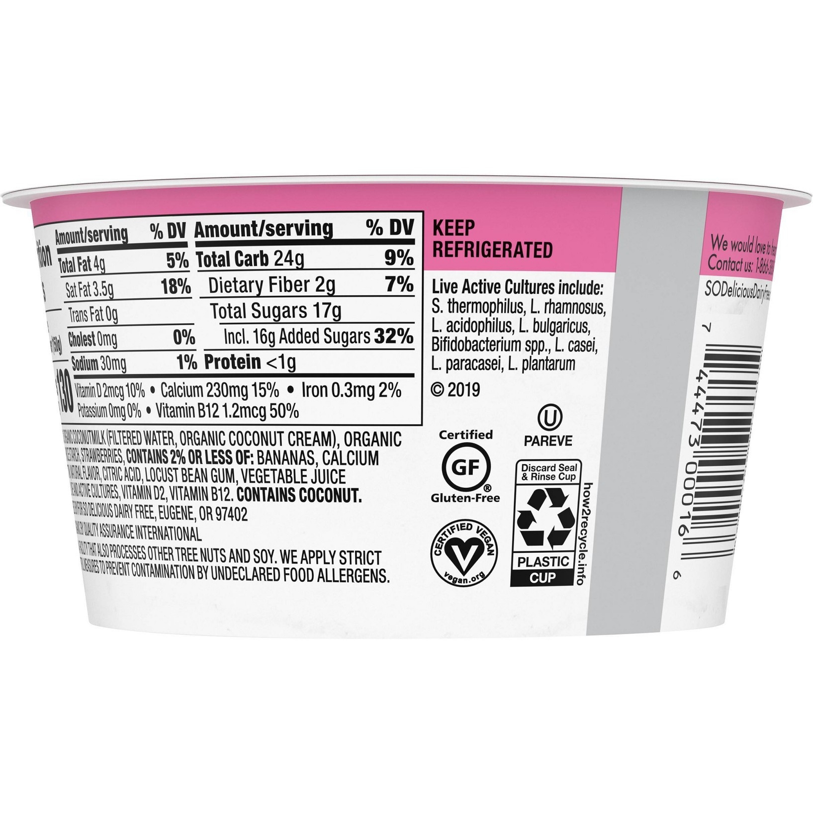 u0026bull;Dairy-free yogurt alternativeu003cbru003eu0026bull;Strawberry flavoru003cbru003eu0026bull;Made with organic coconutmilku003cbru003eu0026bull;Veganu003cbru003eu0026bull;Non-GMO Project Verifiedu003cbru003eu0026bull;Free of dairy, lactose, soy, and gluten