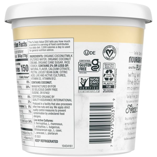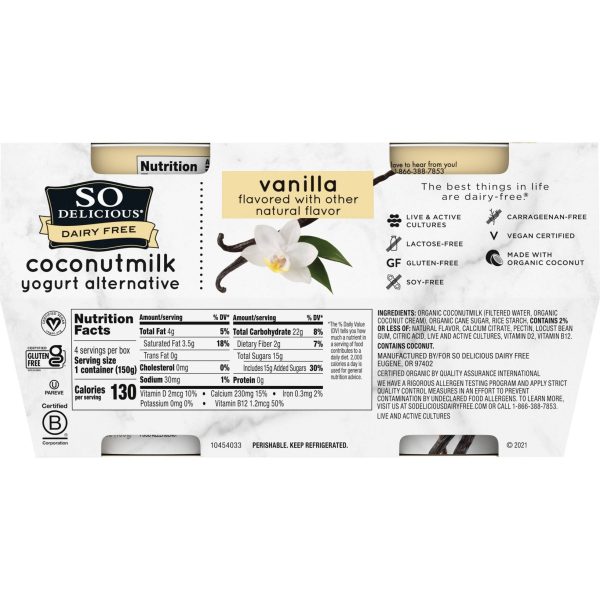 u0026bull;Dairy-free yogurt alternativeu003cbru003eu0026bull;Vanilla flavoru003cbru003eu0026bull;Made with organic coconutmilku003cbru003eu0026bull;Veganu003cbru003eu0026bull;Non-GMO Project Verifiedu003cbru003eu0026bull;Free of dairy, lactose, soy, and gluten