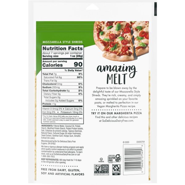 u0026bull;Dairy-free Mozzarella style shredsu003cbru003eu0026bull;A tasty substitute for dairy cheese in recipesu003cbru003eu0026bull;Veganu003cbru003eu0026bull;Non-GMO Project Verifiedu003cbru003eu0026bull;0g trans fat and cholesterol