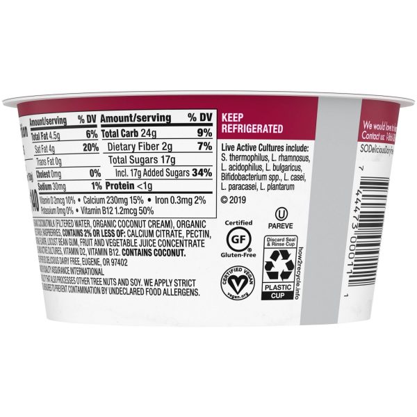 u0026bull;Dairy-free yogurt alternativeu003cbru003eu0026bull;Raspberry flavoru003cbru003eu0026bull;Made with organic coconutmilku003cbru003eu0026bull;Veganu003cbru003eu0026bull;Non-GMO Project Verifiedu003cbru003eu0026bull;Free of dairy, lactose, soy, and gluten