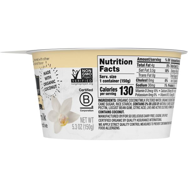 u0026bull;Dairy-free yogurt alternativeu003cbru003eu0026bull;Vanilla flavoru003cbru003eu0026bull;Made with organic coconutmilku003cbru003eu0026bull;Veganu003cbru003eu0026bull;Non-GMO Project Verifiedu003cbru003eu0026bull;Free of dairy, lactose, soy, and gluten