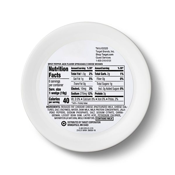 u0026bull;Pack of 6 individually wrapped creamy spicy pepper jack flavor spreadable cheese wedgesu003cbru003eu0026bull;Touch of heat is great for pairing with different crackers and breadsu003cbru003eu0026bull;Made with no artificial flavors, synthetic colors or artificial preservativesu003cbru003eu0026bull;40 calories per serving makes for great snacking – *See Nutrition Information for Sodium Content after 40 calories per serving in soft bulletsu003cbru003eu0026bull;Perfect and easy addition to lunchtime