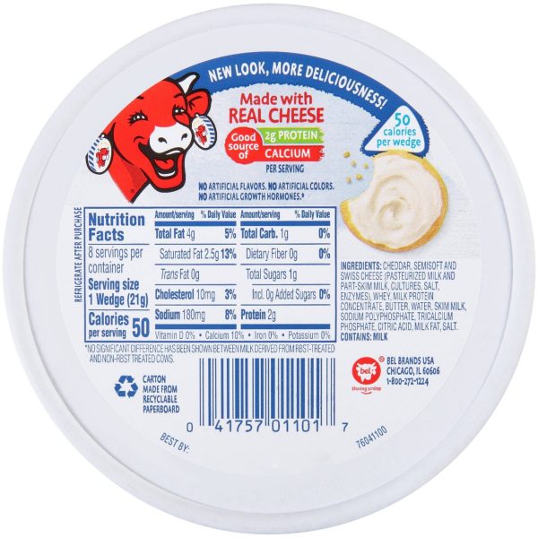 u0026bull;Spreadable Swiss Cheese great for snackingu003cbru003eu0026bull;8 Perfectly portioned sized snack wedges made with real cheeseu003cbru003eu0026bull;Creamy Original Swiss, the classic flavor of The Laughing Cow®u003cbru003eu0026bull;2g of protein and 50 calories per wedgeu003cbru003eu0026bull;” No artificial flavors, colors, or growth hormones “
