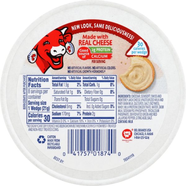 u0026bull;Spreadable Spicy Pepper Jack Cheese great for snackingu003cbru003eu0026bull;8 Perfectly portioned sized snack wedges made with real cheeseu003cbru003eu0026bull;Creamy Spicy Pepper Jack, the right combination of jalapeño peppers and cream cheeseu003cbru003eu0026bull;2g of protein and 35 calories per wedgeu003cbru003eu0026bull;No artificial flavors, colors, or growth hormones