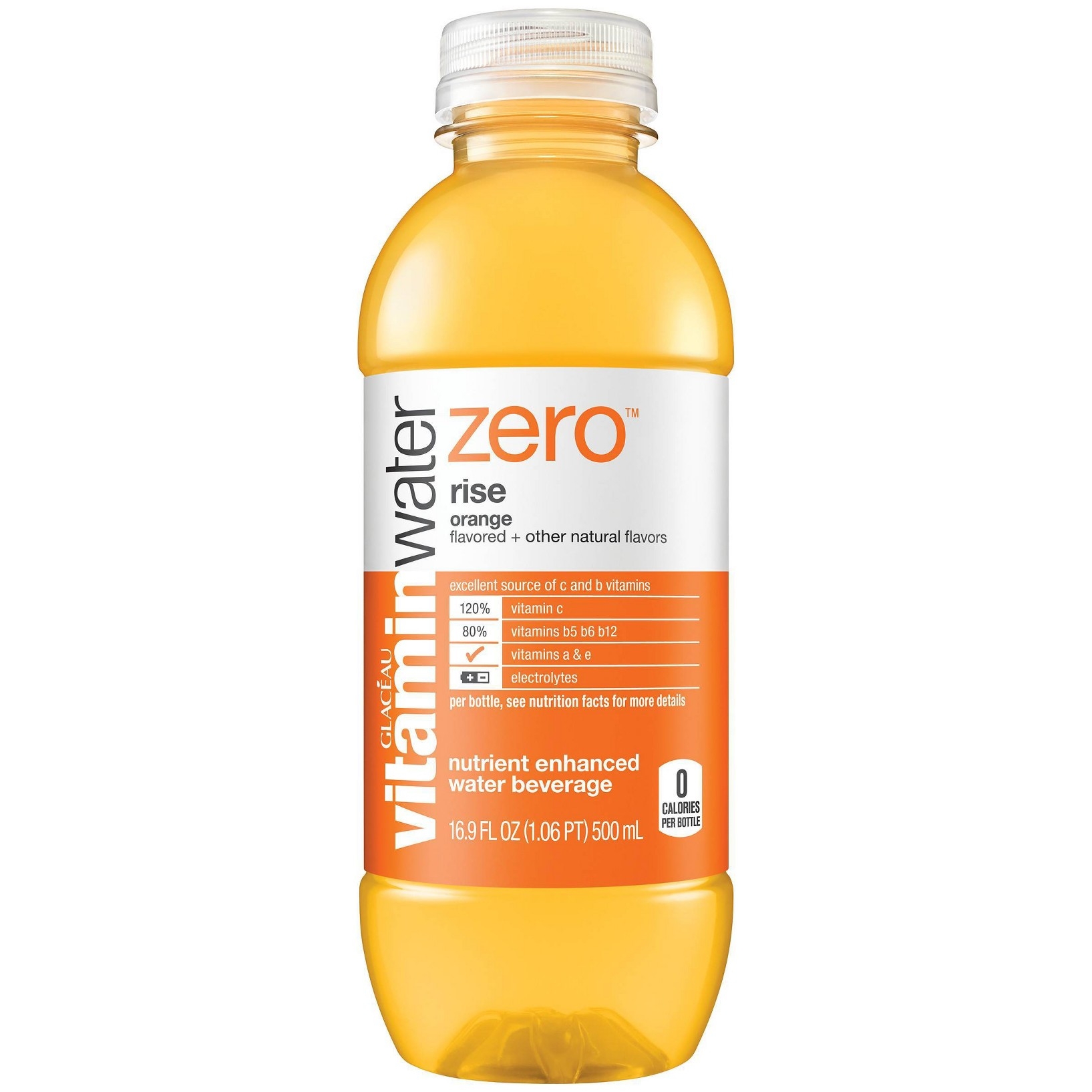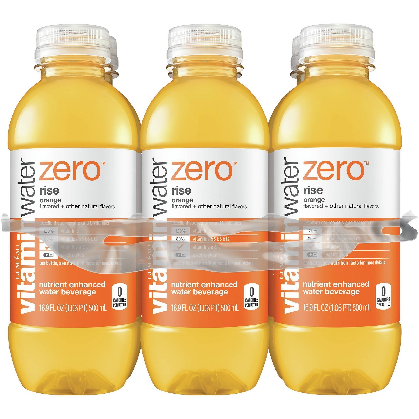 u0026bull;Great taste. more nutrients. zero sugar. win win win.u003cbru003eu0026bull;Zero sugar vitamin and nutrient-enhanced water beverage with electrolytes and other good stuffu003cbru003eu0026bull;With 250% vitamin c and 25% zinc to support normal immune functionu003cbru003eu0026bull;Plus a great source of vitamin b5, vitamin b6, and vitamin b12u003cbru003eu0026bull;The delicious taste of orange flavor with other natural flavorsu003cbru003eu0026bull;Get six 16.9 fl oz bottles of vitaminwater zero sugar rise, 0 calories each