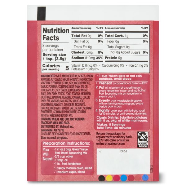Great Value Pork Roast Seasoning Mix makes a family dinner the whole family will love. This one-ounce seasoning package is packed with that comfort food taste and is full of flavor and easy to prepare. Just sprinkle over potatoes and other veggies or dry rub your pork roast before cooking. It’s sure to add a savory flavor that will make your roast one to remember. Check out Great Value for more seasoning packets for your daily dinners and more. Get that home-cooked taste you know and love with our Great Value Pork Roast Seasoning Mix.