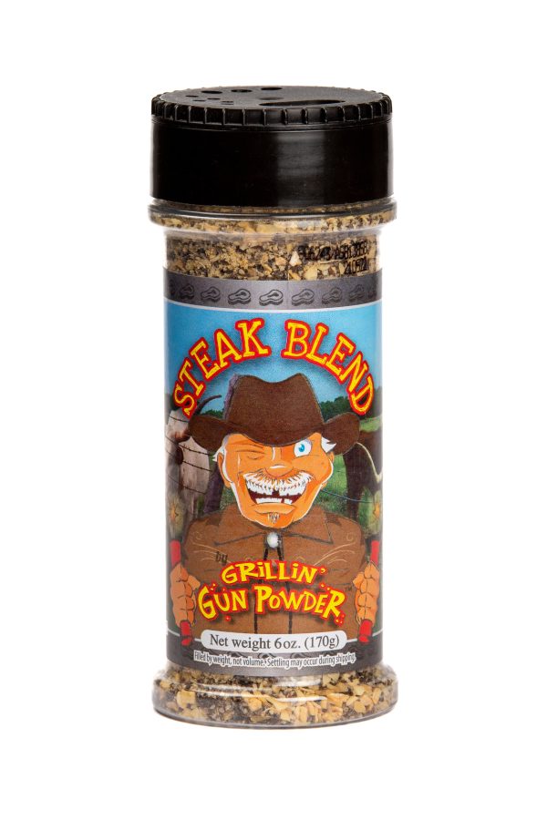 Steak Blend 6.0oz is great on just about everything! Our all-purpose blend contains go-to kitchen classics. Add it to chicken, steak, pork, fish, vegetables, soups, sandwiches, and salads – no matter what meal, the flavor will blow you away. You can also add to venison, elk, turkey, pheasant and more. It also makes a great rub and amazing homemade jerky. This MSG free, low sodium seasoning blend has zero calories! Put a blast of flavour in your food with our Steak Blend seasoning. Gluten & Dairy Free, KETO, Paleo, Vegan friendly. Seasoning blends are manufactured in the USA by Grillin’ GunPowder Steak seasoning blend that is great addition to your seasonings & spices.