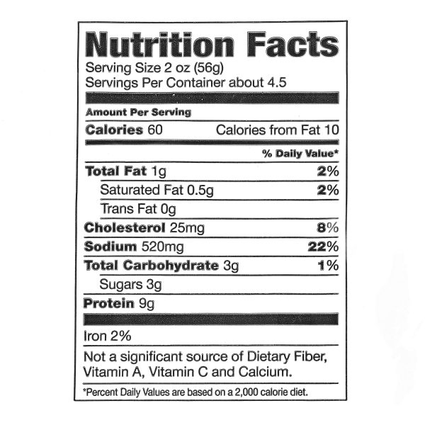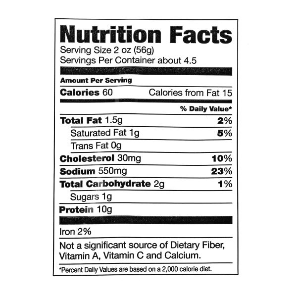 Whether you are making yourself a sandwich or preparing an appetizer for your next party, Great Value Thin Sliced Smoked Ham is the deli meat for you. Each 9-ounce tub offers a ready-to-enjoy treat that is deliciously seasoned and perfectly sliced. This meat does not contain any artificial flavors, colors, or added nitrates or nitrites, making it a healthy option for the whole family. It is also 97 percent fat free and packaged in a resealable container that maintains freshness when properly stored in the refrigerator. Make Great Value Thin Sliced Smoked Ham your go-to deli meat!