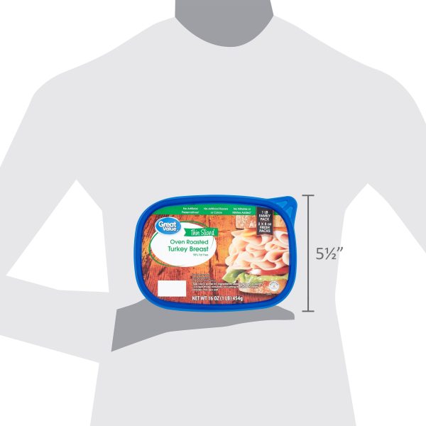 Take your meal to the next level with Great Value Thin Sliced Oven Roasted Turkey Breast Family Pack. Our turkey is bursting with flavor and takes any meal to the next level. Pile slices high on a classic turkey and Swiss sub for a tasty combination you will love. With only 50 tiny calories and 9 grams of protein per serving, you can afford to pile a triple-decker club or classic sub high with this deli meat. Our convenient resealable family package comes with two 8-ounce fresh packs of turkey, so you’ll have enough on hand for tons of yummy creations. Love lunchtime, dinnertime, or anytime with Great Value Thin Sliced Oven Roasted Turkey Breast Family Pack. Great Value products provide families with affordable, high quality grocery and household consumable options. With our wide range of product categories spanning grocery and household consumables, we offer you a variety of products for your family’s needs. Our products are conveniently available online and in Walmart stores nationwide, allowing you to stock up and save money at the same time.