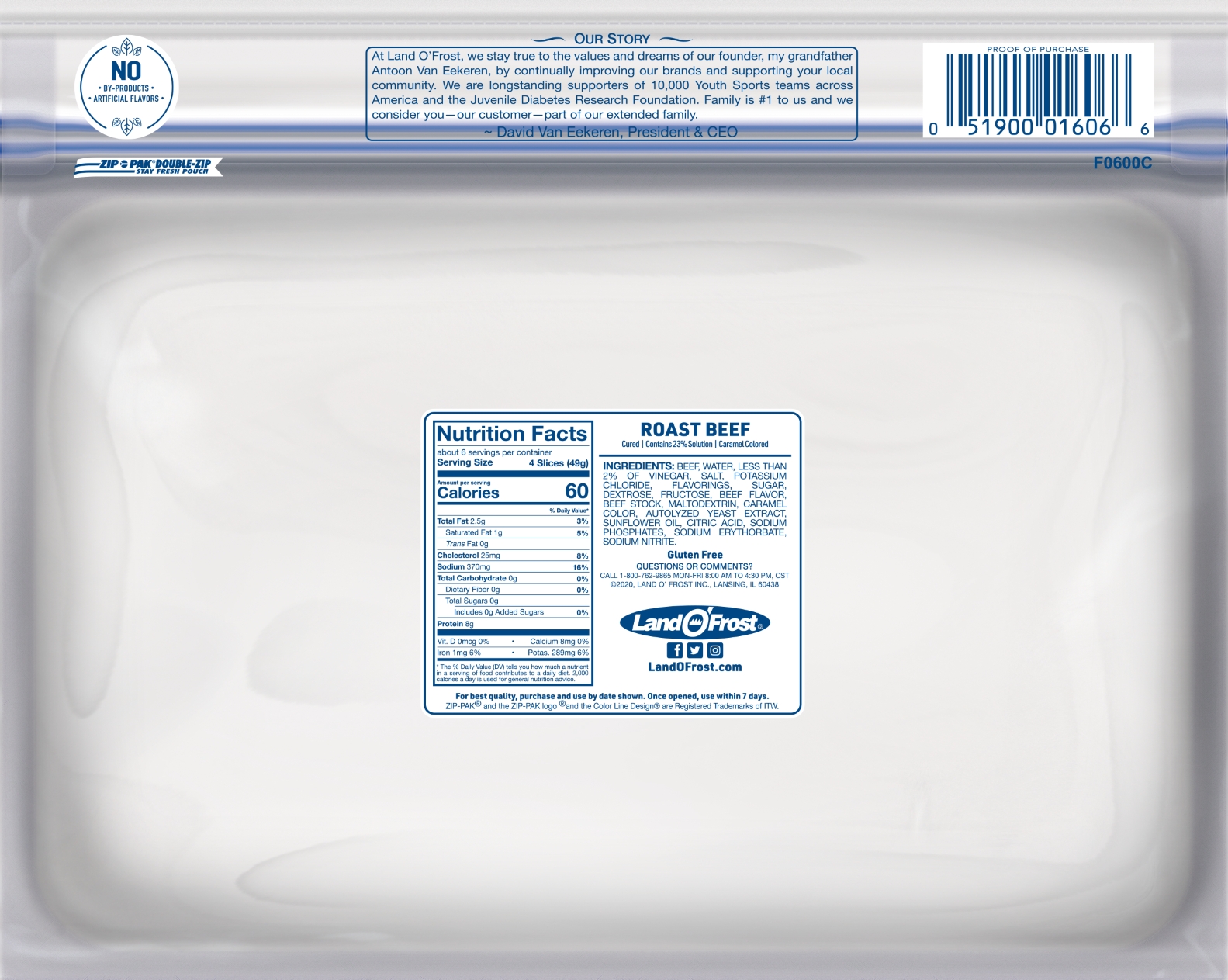 Land O’Frost Premium Roast Cured Beef is affordable, high quality lunchmeat. Made with no by-products, no added hormones* and no artificial flavors, these delicious slices are a superior protein option for quick lunches, dinners and snacks. The popular Land O’Frost Premium meats are packed in blue resealable pouches with special double zip lock seals to help keep your slices fresh and delicious. When it comes to flavor, Land O’Frost Premium luncheon meats are naturally smoked the old fashioned way, never made with artificial smoke additives. Stack these flavorful slices on a sandwich, roll them in a wrap or pair them with some fruit and cheese for the ultimate snack pack! *Federal regulations prohibit the use of hormones in poultry, excludes beef