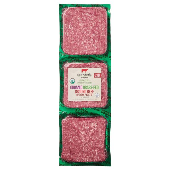 Marketside Butcher Organic Grass-Fed 85% Lean/15% Fat, Ground Beef, 1 lb, 3 Count