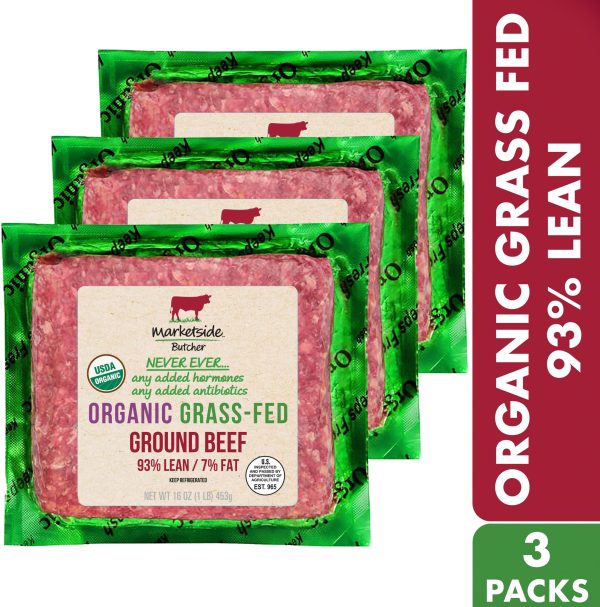 Marketside Butcher Organic Grass-Fed 93% Lean 7% Fat, Ground Beef, 1 lb, 3 Count