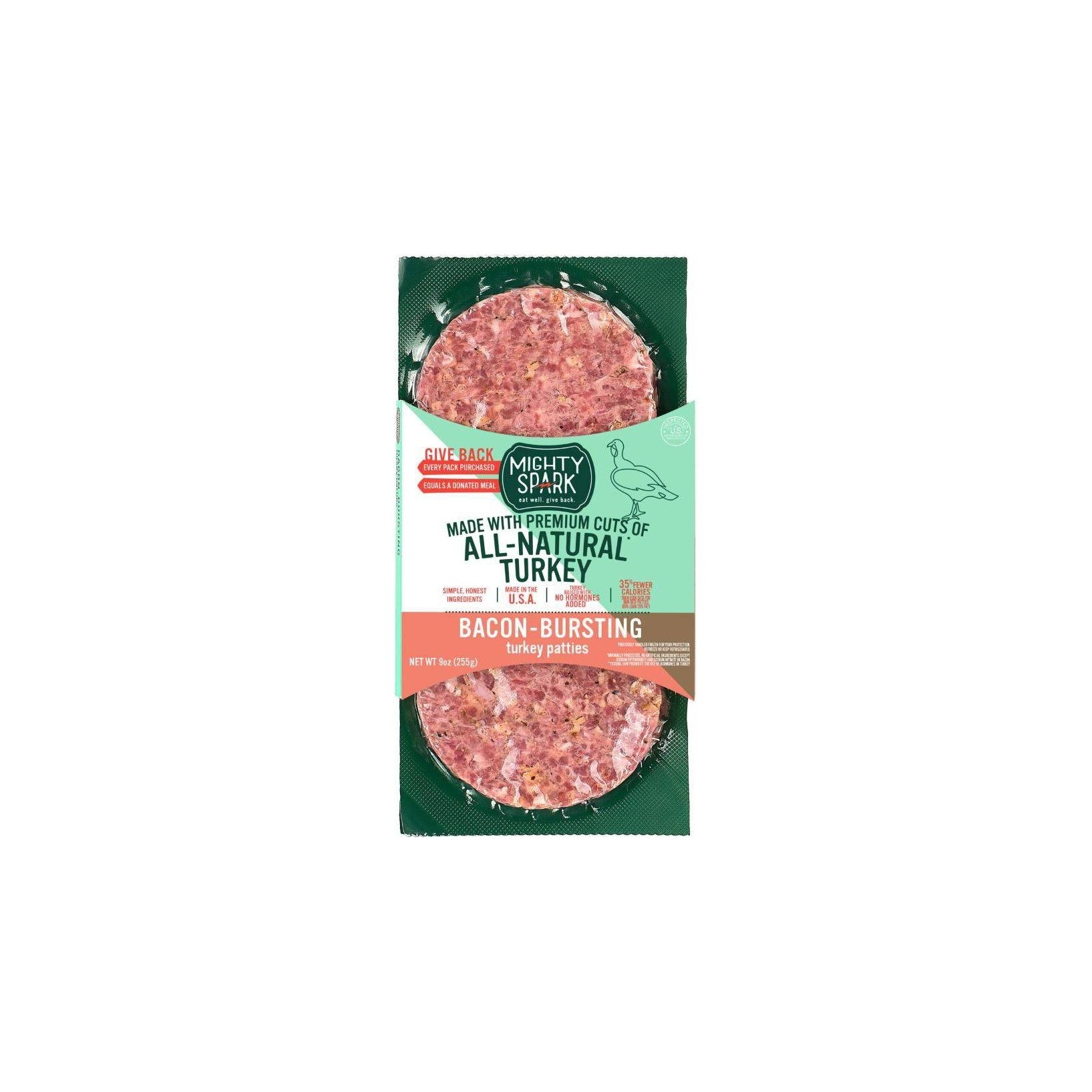 Mighty Spark Food Co. Bacon Bursting Ground Turkey Patties – 9oz