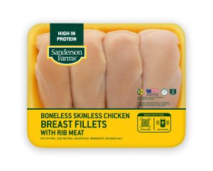 Sanderson Farms boneless, skinless chicken breast fillets are easy to serve for any occasion! For cooking inspiration, check out our recipes from the QR code on front of the package, our voice-activated recipes from your smart speaker, or on sandersonfarms.com.