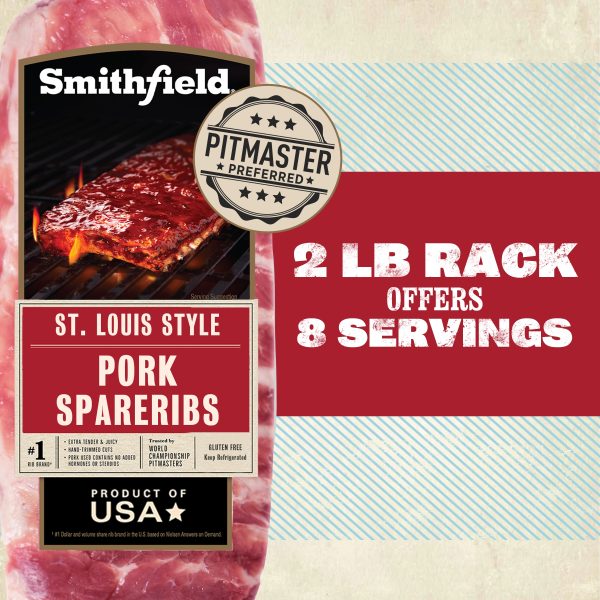 Smithfield St. Louis-Style Fresh Pork Spareribs deliver irresistible barbecue flavor in every bite. St. Louis-style spareribs are trimmed to leave out the cartilage, breastbone, and tips for a neater cut that’s tidier in presentation than regular spareribs. Trusted by World Champion Pitmasters, every rack is hand-selected and hand-trimmed to maximize the amount of meat on each bone. Apply your favorite rubs, marinades and seasonings to Smithfield ribs to craft the perfect flavor profile. Bring the family together with the #1 Rib Brand in the U.S. and choose Smithfield St. Louis-Style Fresh Pork Spareribs for an unforgettable backyard barbecue.