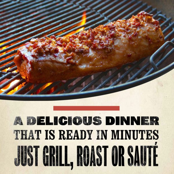 Smithfield Applewood Smoked Bacon Fresh Pork Loin Filet delivers irresistible smoked bacon flavor in every bite. Each pork loin is specially marinated to add deep juicy flavor and extra tenderness. This pork loin is dry rubbed with seasoning and topped with crumbled applewood smoked bacon for mouthwatering flavor. Packed with 20 grams of protein per serving, this gluten free pork loin has no artificial ingredients, for a tasty and filling meal option you can trust. Whether you’re preparing for the next family dinner or backyard barbecue, choose Smithfield Applewood Smoked Bacon Fresh Pork Loin Filet for a flavor-packed meal.