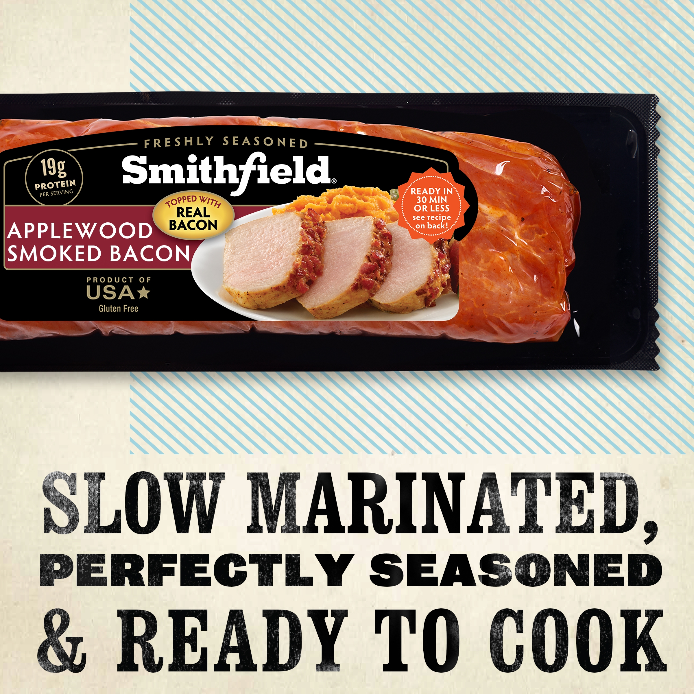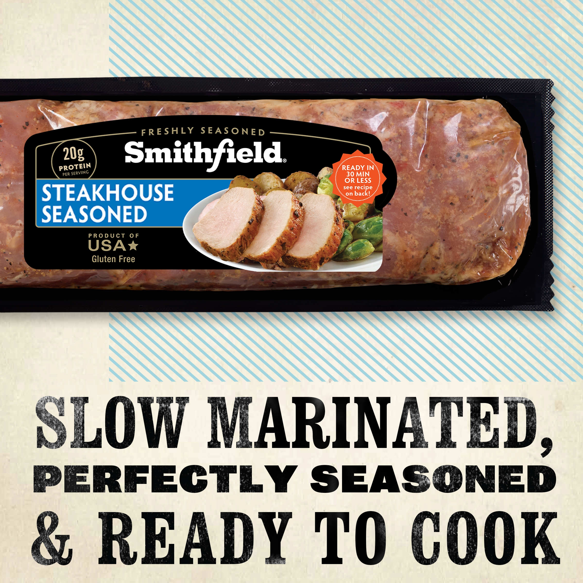 Smithfield Steakhouse Seasoned Fresh Pork Tenderloin delivers irresistible steakhouse-style pork flavor with every bite. Each tenderloin is specially marinated to add deep juicy flavor and extra tenderness right out of the package. This Smithfield pork tenderloin is dry rubbed with a blend of seasonings for a rich flavor profile, just like your favorite steakhouse. With no artificial ingredients, this gluten free pork is easy to cook in the oven or on the grill, for a tasty meal you can trust. Whether you’re preparing for the next family dinner or backyard barbecue, choose a Smithfield Steakhouse Seasoned Fresh Pork Tenderloin for a flavor-packed meal every time.