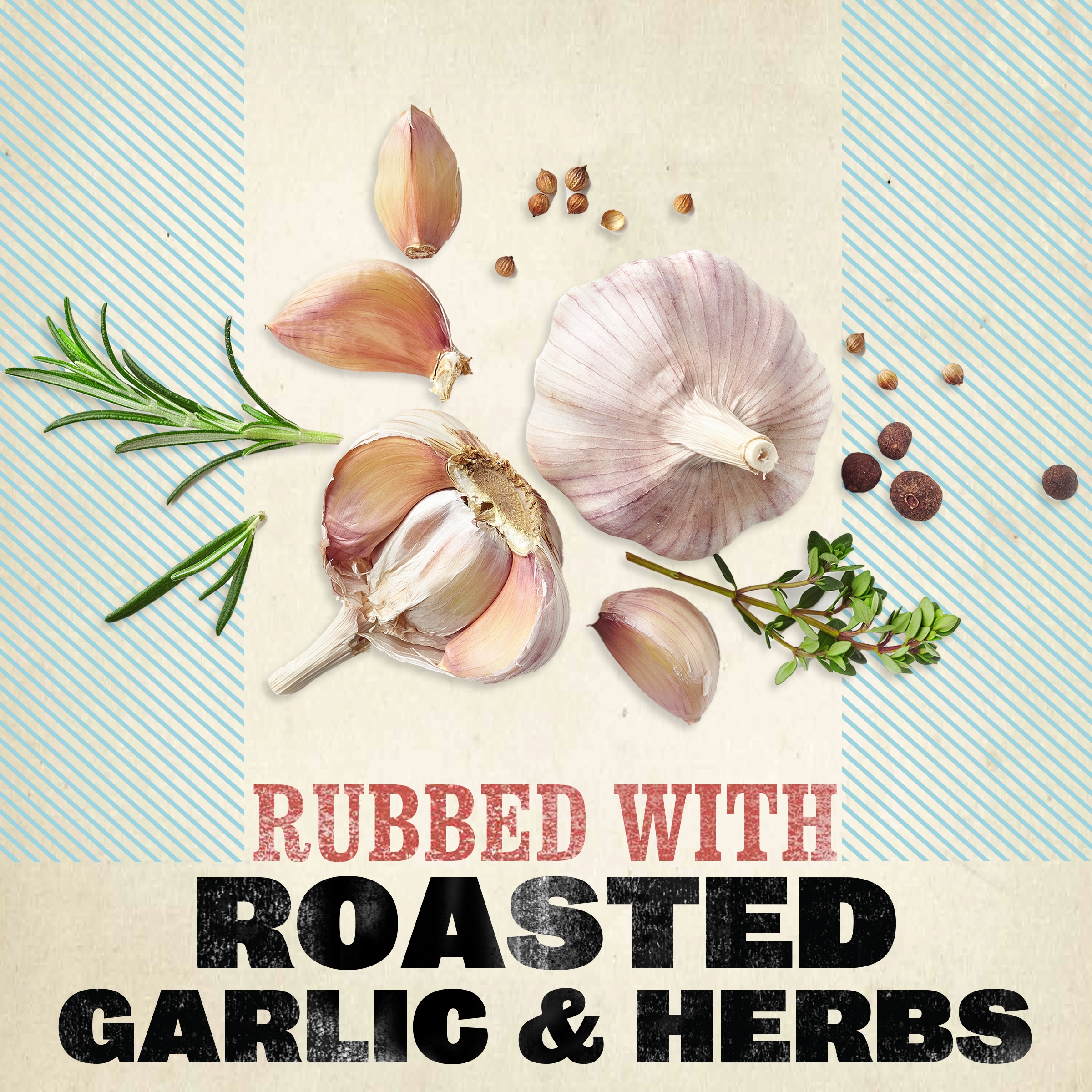 - Dry rubbed with roasted garlic and herbs for mouthwatering flavor