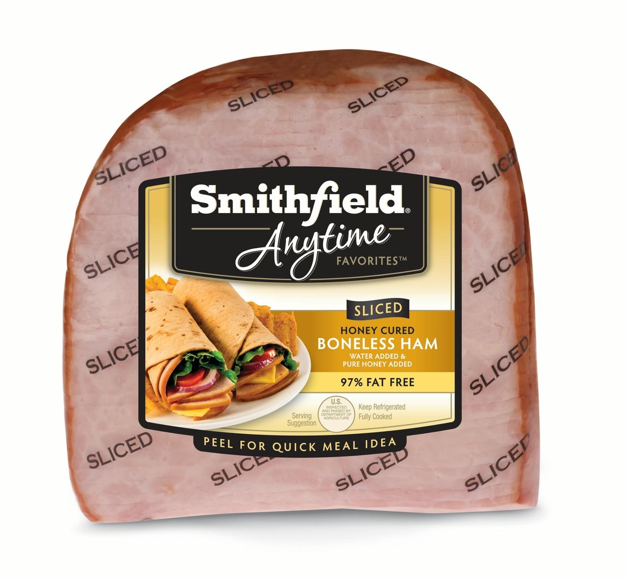 Smithfield Anytime Favorites Honey Cured Sliced Boneless Ham features the sweet taste of honey for mouthwatering flavor, and it comes as a fully cooked boneless ham that’s pre-sliced for convenience. This honey cured ham is premium quality and 97% fat free for a meal option that you and your family can trust. Anytime Favorites low fat ham is a fully cooked ham that’s ready to eat or heat up quickly, cutting down on prep time and mess. The cured honey ham is boneless and pre-sliced for easy serving, letting you spend less time in the kitchen and more quality time with family and friends. Smithfield sliced honey ham is ideal for using in sandwiches, serving as a breakfast ham, at your favorite family dinner, or incorporating into heat and serve meals. This lean ham comes packed with protein and is a product of the USA. These honey ham slices are packaged in an airtight plastic to maximize freshness. Make sure to keep ham refrigerated.