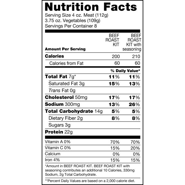 Try something new for dinner this week with a Tyson Ready for Slow Cooker Beef Roast with Vegetables Meal Kit. Each package includes a hearty chuck roast, potatoes, carrots and onions for a family sized meal that is perfect for crock pot roast beef or oven baked pot roast. Our roasting beef is an excellent source of protein, vitamin B6, vitamin B12, zinc, niacin and selenium, as well as a good source of phosphorous, riboflavin and iron. All 9 essential nutrients are naturally found in beef and are a flavorful way to give your body nutrients to help power through the day. Ready in just 3 easy steps, our meal kits make family dinners convenient and delicious. Simply cook and serve for a savory weeknight pot roast meal. Includes one fresh meat meal kit.