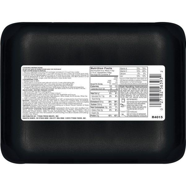 Turn cooking time into more family time with a Tyson Ready for Slow Cooker Pork Roast with Vegetables Meal Kit. With everything you need, it’s easy to make delicious pork roast in oven dishes or as a crock pot pork roast any night of the week. Each package includes all the fresh boneless pork roast recipe fixings, including red potatoes, carrots, celery and onions to make an easy pork roast dinner. This meal is sure to be a hit with the whole family. Simply prepare in a slow cooker and serve for a hearty weeknight pork meat stew dinner. Includes one Tyson meal kit.