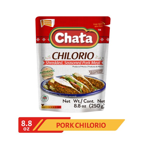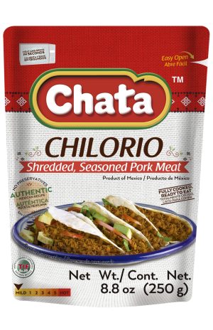 Create a variety of delicious meals with the help of Chata Chilorio Seasoned Pork, 8.8 oz. The meat is shredded and flavored with chili peppers, salt, spices and garlic, which are blended in a vinegar base. This pork pouch is easy to open and can be heated on the stovetop, as well as in the microwave. It’s Ideal for making enchiladas, tacos and even sandwiches. This Chata Chilorio pork is easy to handle and store on a pantry shelf. It’s also 190 calories per serving and is packed with 8g of protein for a fulfilling dish.