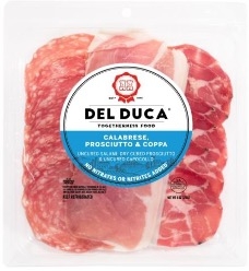 Del Duca Gourmet Deli Selection ( Calabrese Salame, Del Duca Prosciutto & Capocollo), pre sliced variety pack. Three timeless staples of charcuterie that come together to create an upgrade for any charcuterie board or sandwich and comes in a resealable package. Daniele has a long history of gourmet food that started over 60 years ago. From our famous Del Duca® Prosciutto to our other charcuterie, you can rest assured that every product is autentico, according to time-honored Italian traditions. You can taste the Daniele/ Del Duca tradition in every bite!