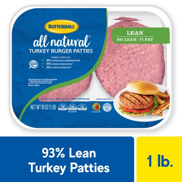 Always tender and juicy, All Natural Butterball turkey burgers are minimally processed and have no artificial ingredients, hormones or steroids. Use lean Butterball turkey meat as the star of your favorite recipe for a low-fat, gluten-free choice. Family dinner, party appetizers or lunch from the grill, you can enjoy fresh Butterball turkey all year long.