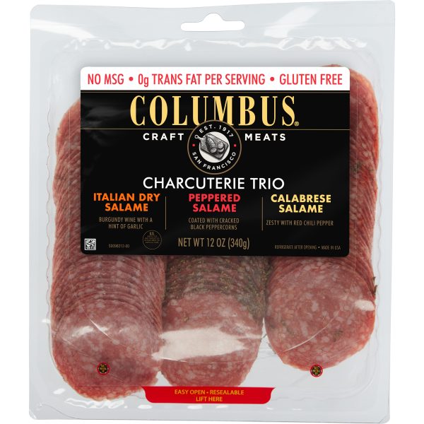 COLUMBUS Sliced Charcuterie Trio, Italian Dry, Peppered, and Calabrese Salami, 12 oz