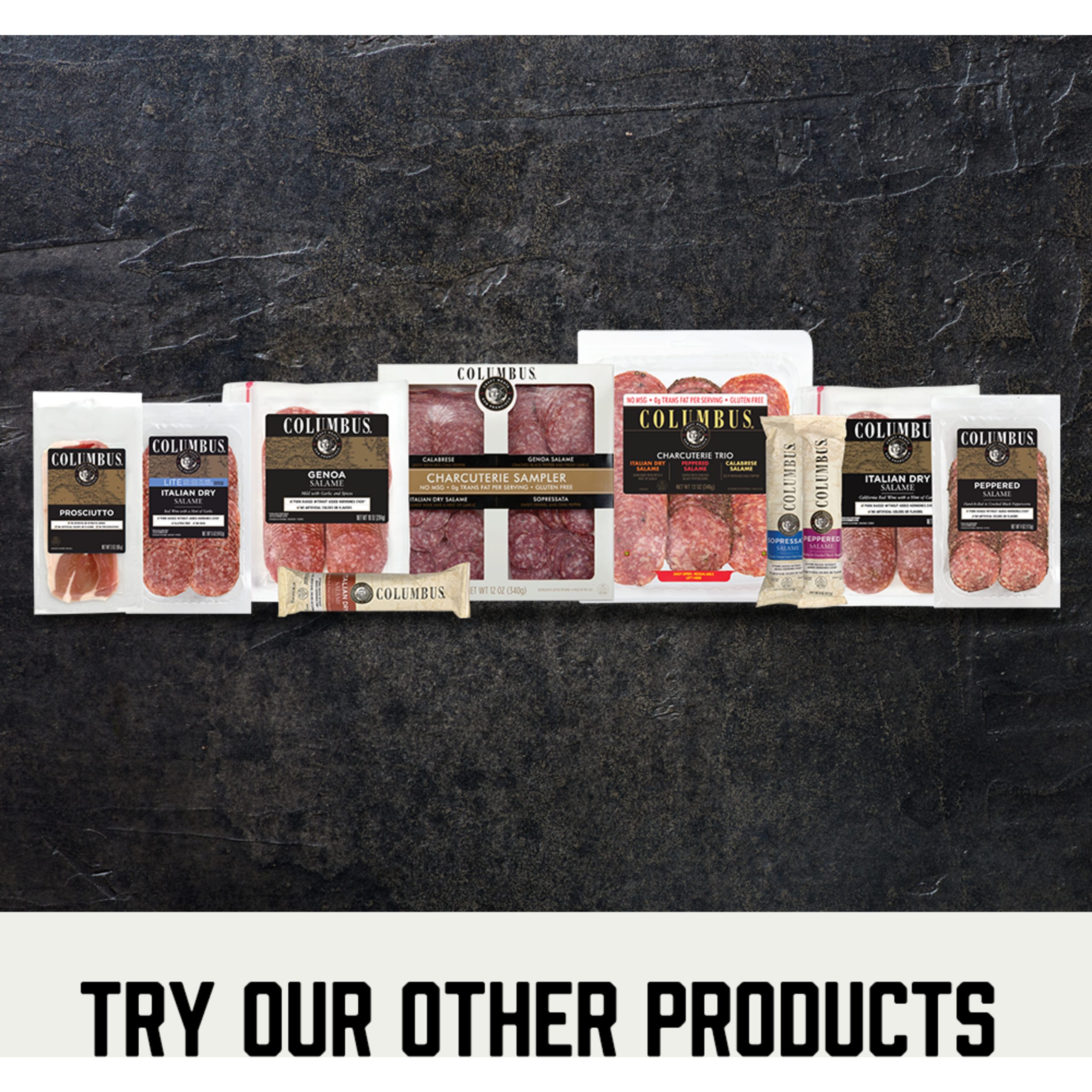 With the COLUMBUS Sliced Charcuterie Trio, charcuterie board building has never been easier with this convenient, resealable, salami variety pack. This pre-sliced, ready-to-serve salami sampler pack includes the perfect combination of salami for any occasion. Includes Calabrese, Italian Dry and Peppered Salami for a flavorful foundation for any charcuterie board. Simply pair this trio of salami with cheddar, pepper jack or mahon cheeses, and sip with pinot noir, pilsner or Barolo. Not only perfect for charcuterie, this salami variety pack is great for snacks, appetizers, or sandwiches that will surely not disappoint. All trademarks, logos and images are owned by Hormel Foods Corporation, its subsidiaries and affiliates. Copyright Columbus Manufacturing, Inc.