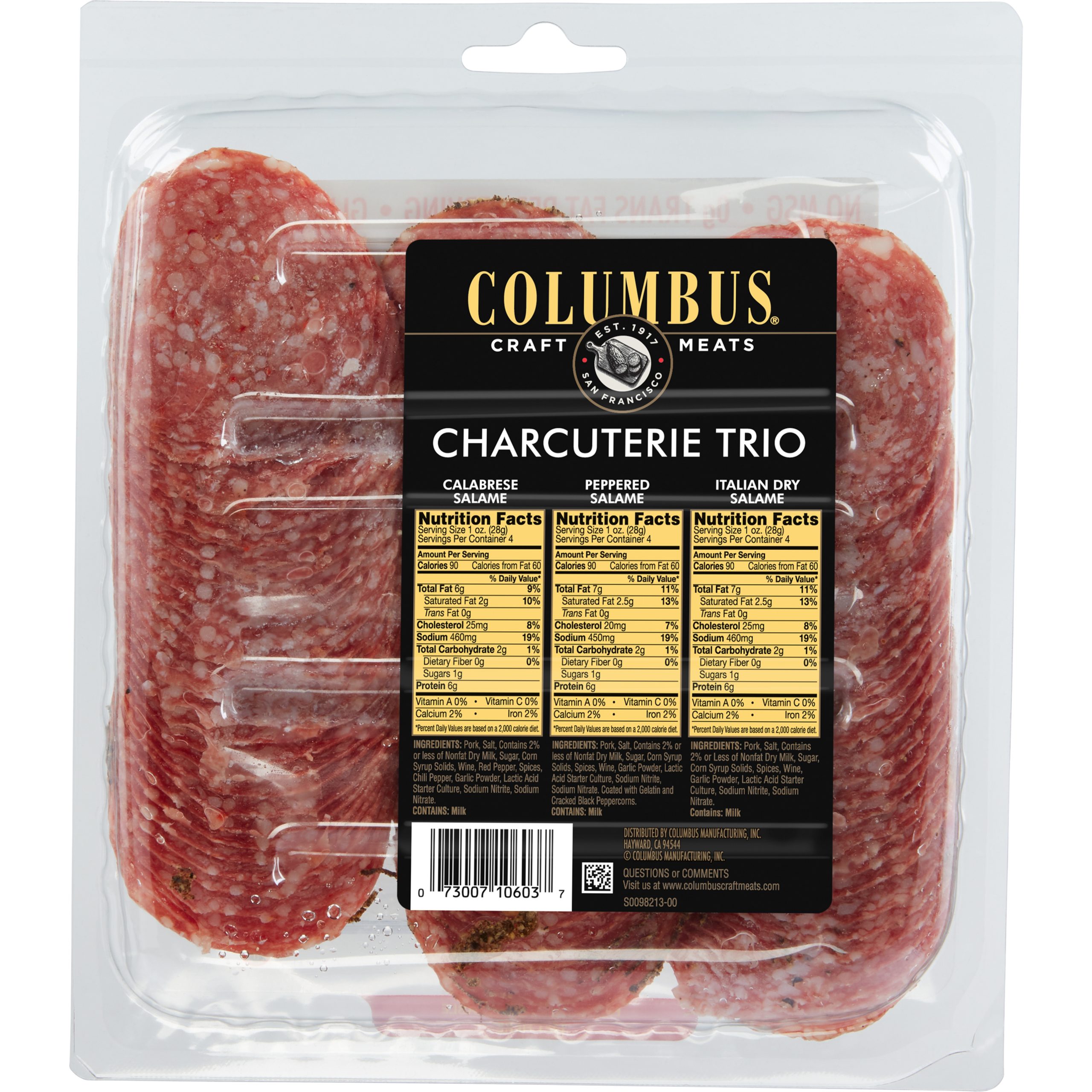 COLUMBUS Sliced Charcuterie Trio, Italian Dry, Peppered, and Calabrese Salami, 12 oz