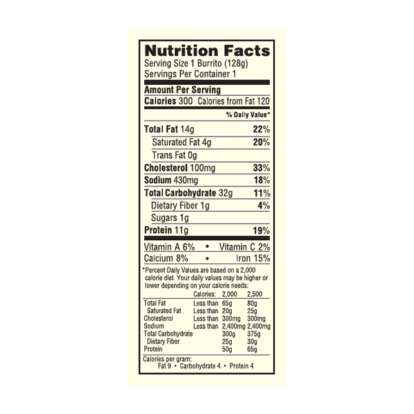 El Monterey Burritos, Egg, Applewood Smoked Bacon & Cheese