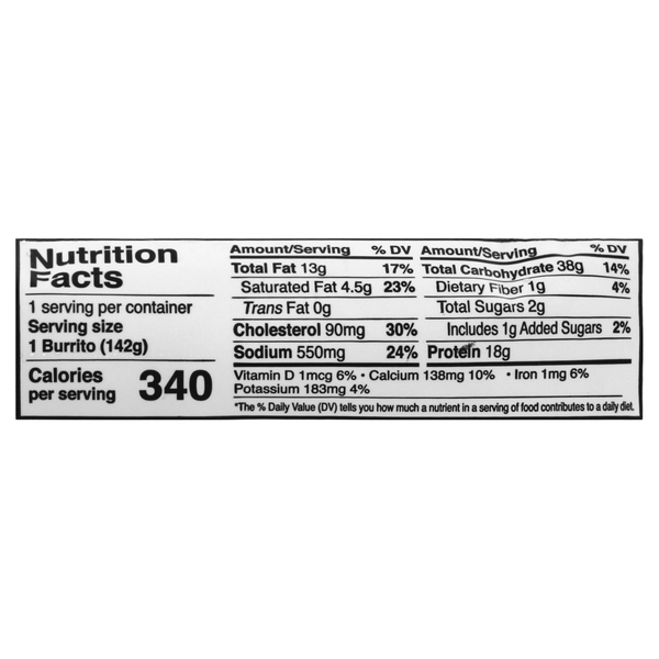 Red’s Burrito, Egg & Three Cheese, Canadian Bacon