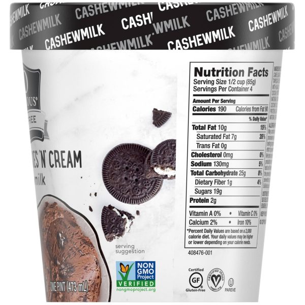 u0026bull;Dairy-free frozen dessertu003cbru003eu0026bull;Chocolate cookies n’ cream flavoru003cbru003eu0026bull;Made with cashewmilku003cbru003eu0026bull;Certified veganu003cbru003eu0026bull;Non-GMO Project Verifiedu003cbru003eu0026bull;Free of dairy, lactose, soy, and gluten